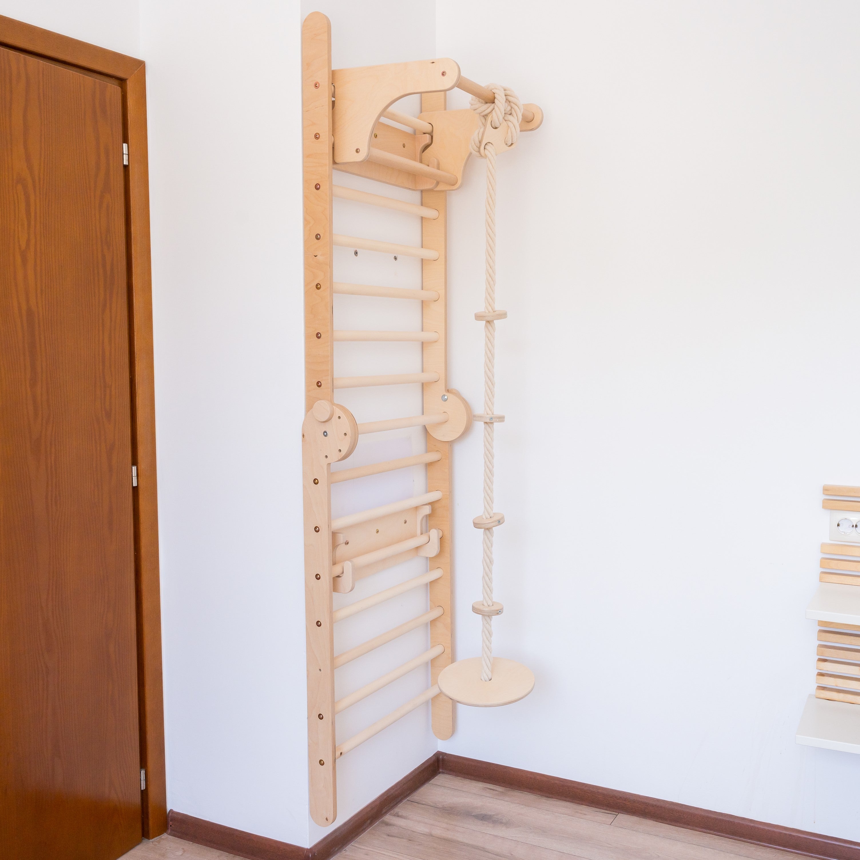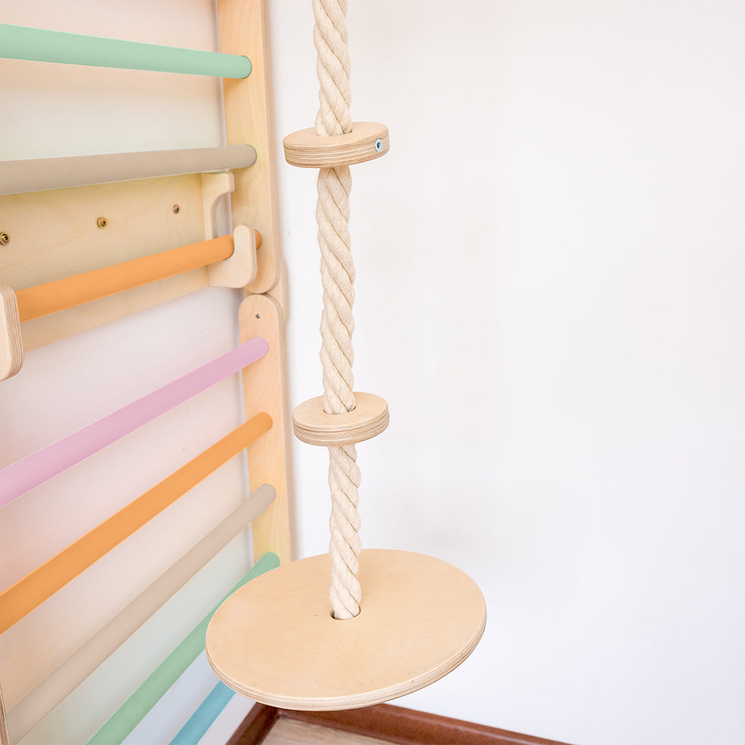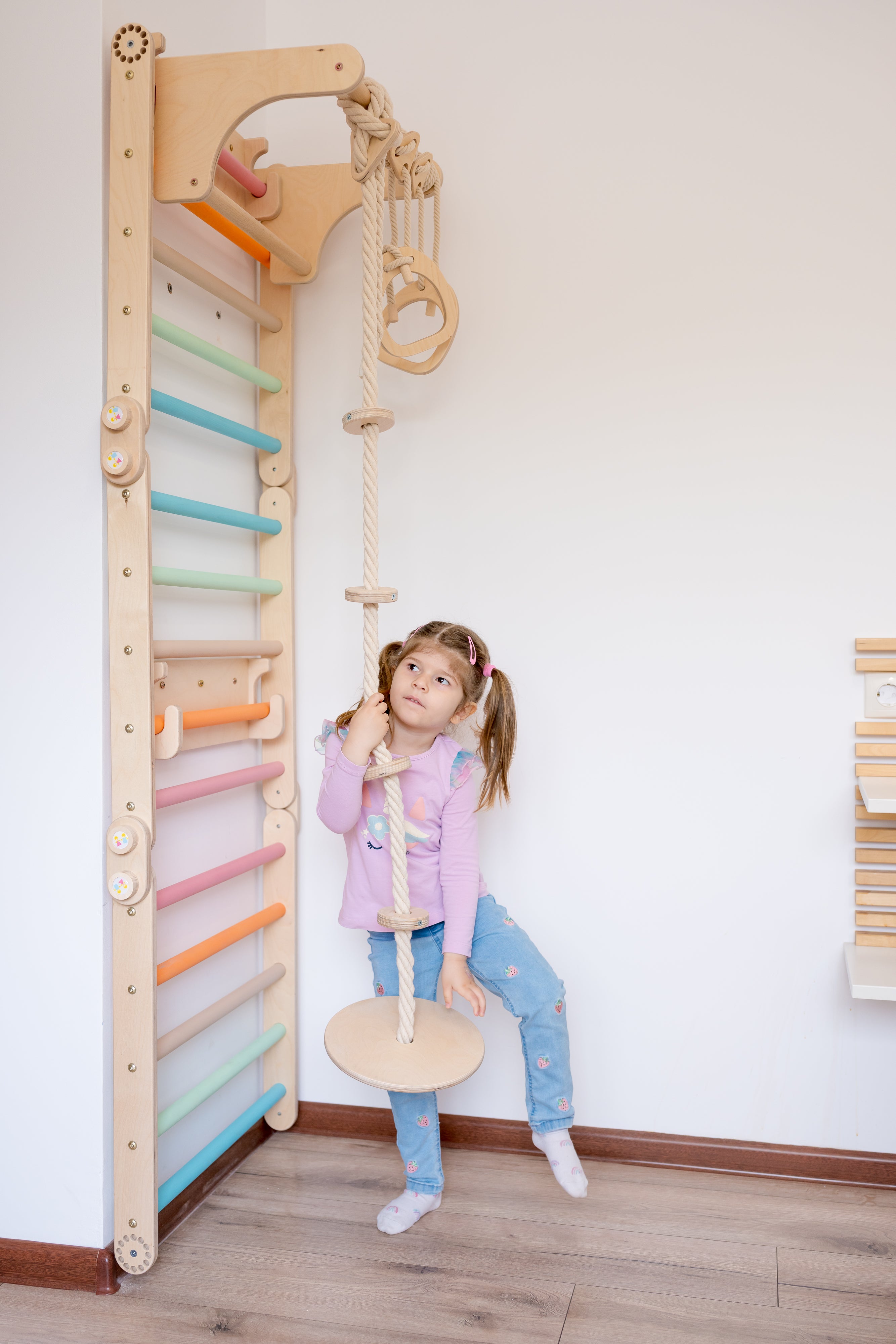 Perfect for encouraging active play, balance, and muscle development, this swing-and-climb combo turns your Swedish Wall into a multi-functional indoor playground.